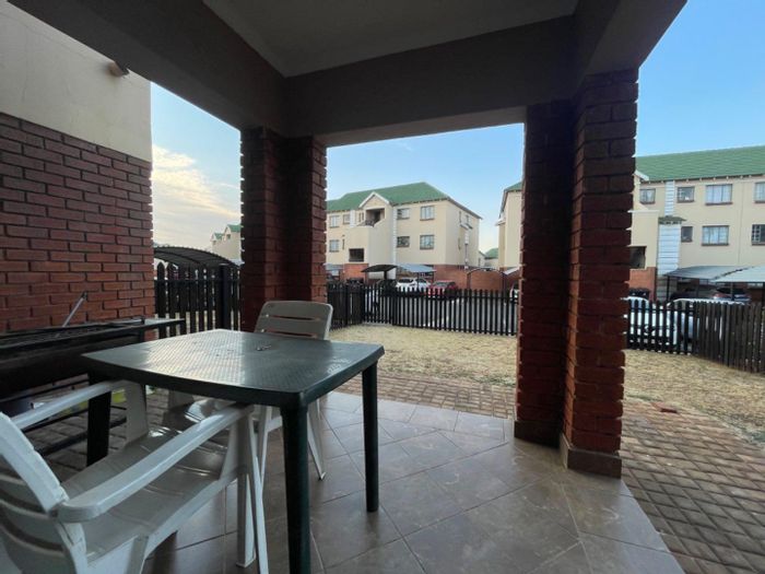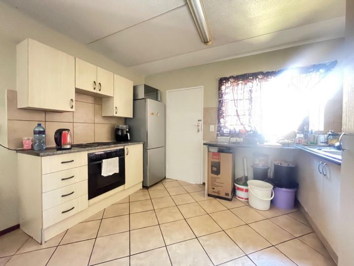 Enjoy spacious, secure ground-floor living in a quiet complex near amenities, with a designer kitchen and scullery, solar geyser and double garage — 3 beds, 2 baths.