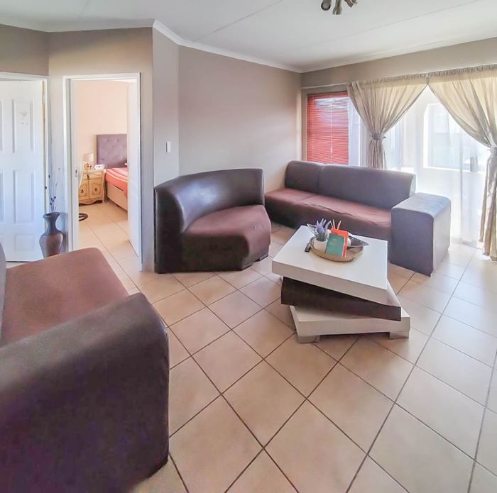 Secure, low-maintenance cluster living in a sought-after area near schools, malls and major highways, with 24-hour security and a double garage — open-plan lounge, two bedrooms, one bathroom.