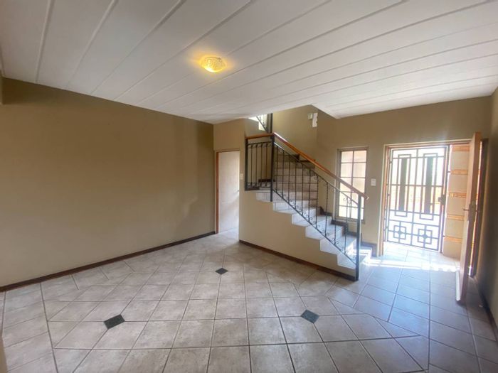 Relaxed, pet-friendly living in the heart of Rangeview — lock-up townhouse in a well-kept facebrick complex with a landscaped, private garden; three bedrooms, two bathrooms, and tandem garage.