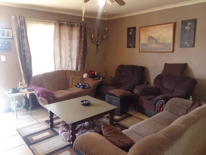 Peaceful suburban living in Riversdal, Meyerton — private walled plot with palisades, open-plan kitchen, lounge with garage entrance and back veranda for relaxed entertaining; 3 beds, 2 baths.