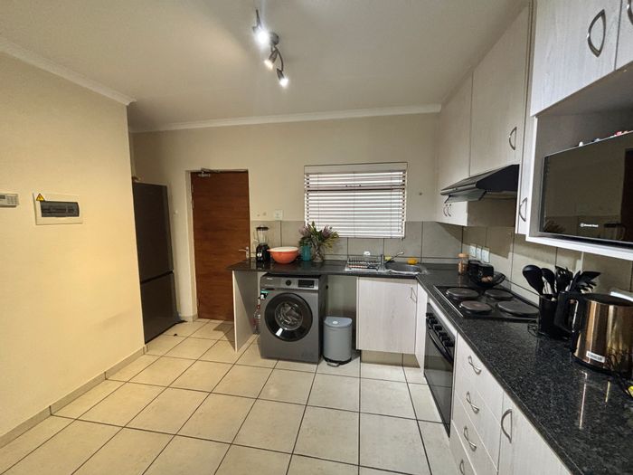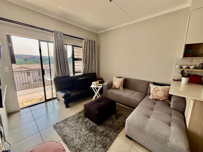 Light-filled, secure apartment in Barbeque Downs, Midrand — open-plan living with tiled floors and a practical kitchen; moments from shops and highways. 2 beds, 2 baths, covered parking.