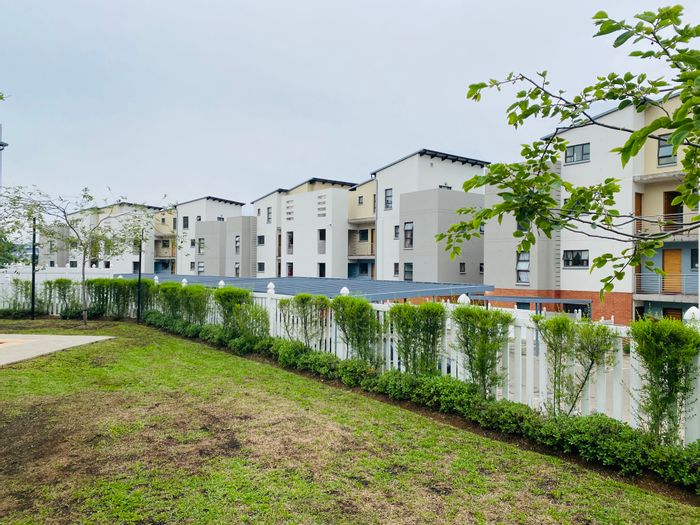 Enjoy relaxed suburban living in Barbeque Downs, Midrand, close to shopping and highways — open-plan apartment with modern kitchen, sparkling pool and two-bed, one-bath with two covered parking.