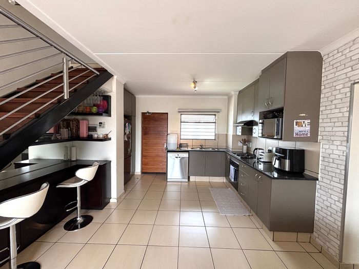 Live well in Barbeque Downs, Midrand — community-focused location with easy routes and shops. Second-floor loft offers modern kitchen, communal pool, storage room; three beds, two baths, two covered parking.