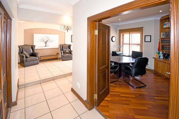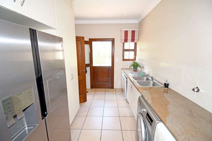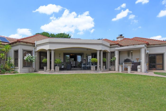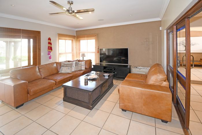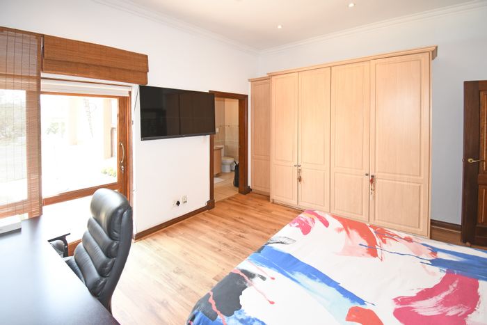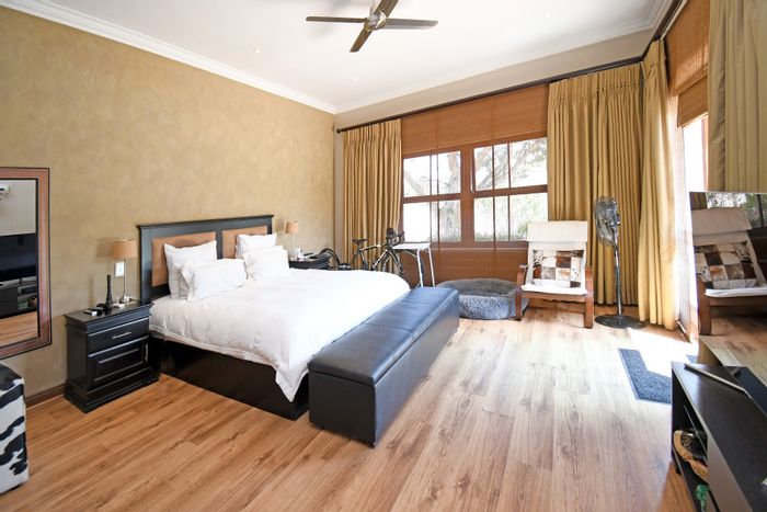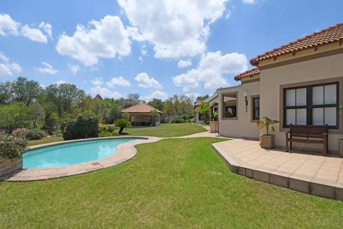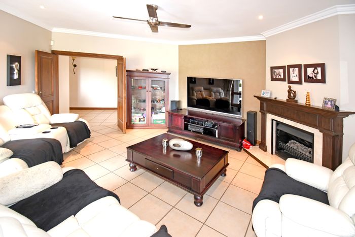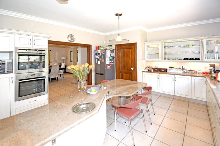 Entertain effortlessly in a serene, well-maintained neighbourhood — pool, boma fire pit, gourmet island kitchen, separate guest wing with lounge; five bedrooms, 5.5 baths, four garages.
