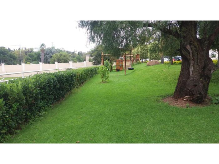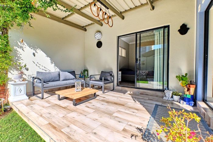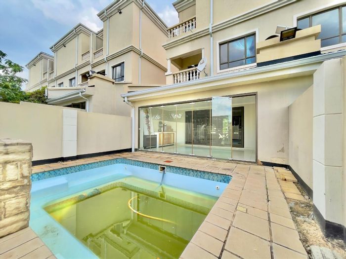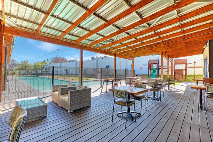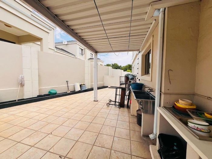 Resort-style estate living in the heart of Carlswald, steps from top schools and shopping, featuring a covered patio with built-in braai overlooking clubhouse pool; three bedrooms, two bathrooms.