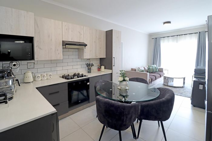 Effortless urban living in Carlswald, Midrand — walk to shops and Gautrain; private balcony for entertaining, modern kitchen, two bedrooms and two bathrooms in a secure complex.