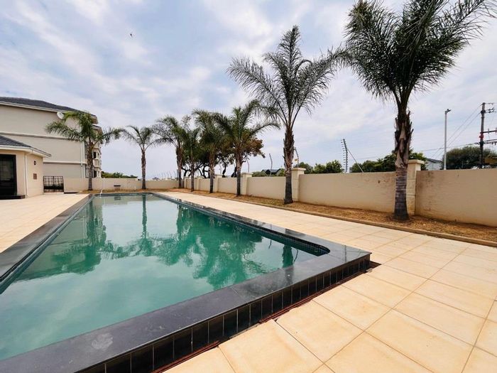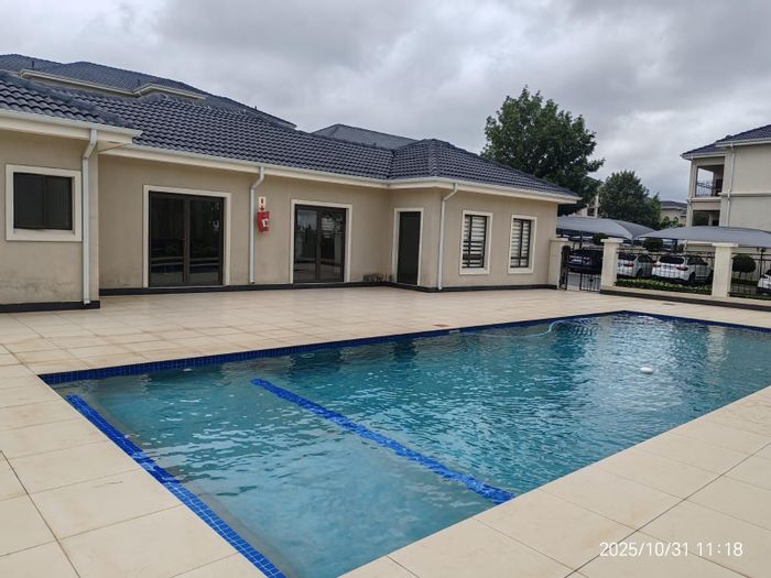 Resort-style living in Carlswald, Midrand — close to schools, shopping and highways. Communal swimming pool and clubhouse, modern quartz kitchen; two bedrooms, two baths, covered parking.