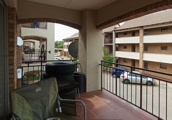 Enjoy relaxed community living on a covered balcony in Midrand's San Ridge Village, moments from highways and shops — modern open-plan apartment with two beds and two baths.