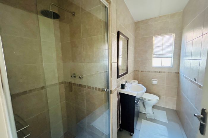 Relaxed, family-friendly estate living in Carlswald View, Midrand — close to malls and top schools. Ground-floor unit with private garden, covered patio with built-in braai, three beds, two baths.