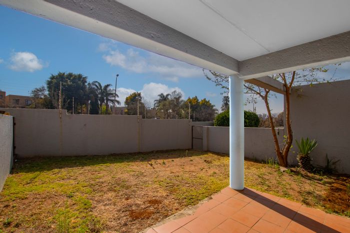 Enjoy relaxed Carlswald living in Midrand with an open-plan lounge flowing to a covered patio overlooking manicured estate gardens; two bedrooms, one bath, and secure small-complex convenience.