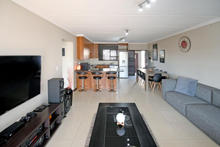 Effortless suburban living in Barbeque Downs, Midrand — walkable to shops and schools, enjoy landscaped communal gardens and pool; modern open-plan kitchen, two bedrooms, two bathrooms, two covered parking.