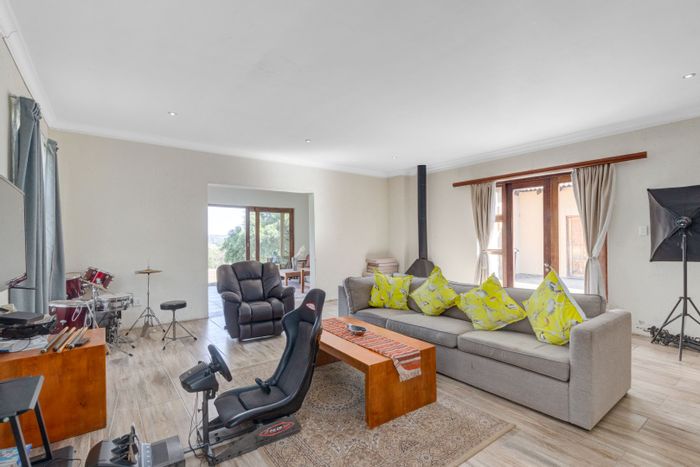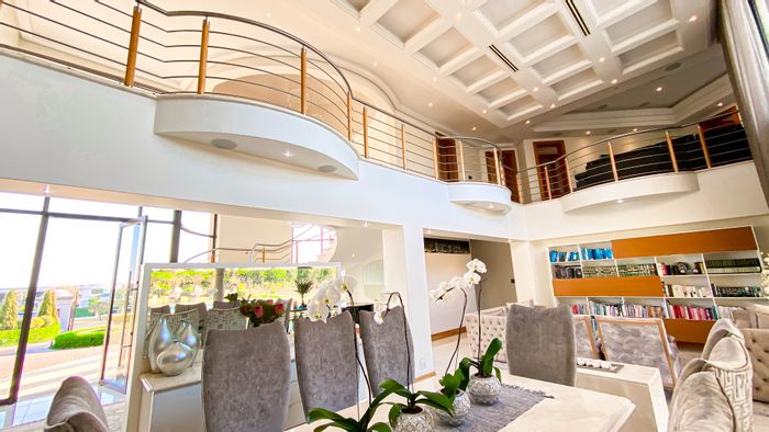 Entertainer’s retreat in serene Saddlebrooke Estate: double‑volume foyer, gourmet SMEG kitchen opening to heated pool, bar/braai patio and sweeping garden. Four bedrooms, four baths, triple garage.
