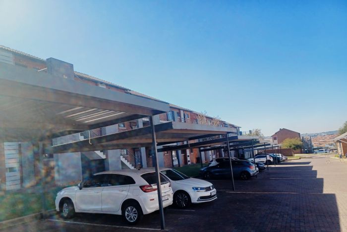 Community-focused living in Sagewood, Noordwyk near Mall of Africa and major routes, featuring a clubhouse and sparkling pool; first-floor two-bedroom, one-bath apartment with covered carport.