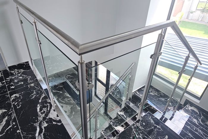 Resort-style family living in a secure estate near Blue Hills Shopping Centre, with a modern kitchen, private patio opening to braai/entertainment garden. Five beds, four baths, double garage.