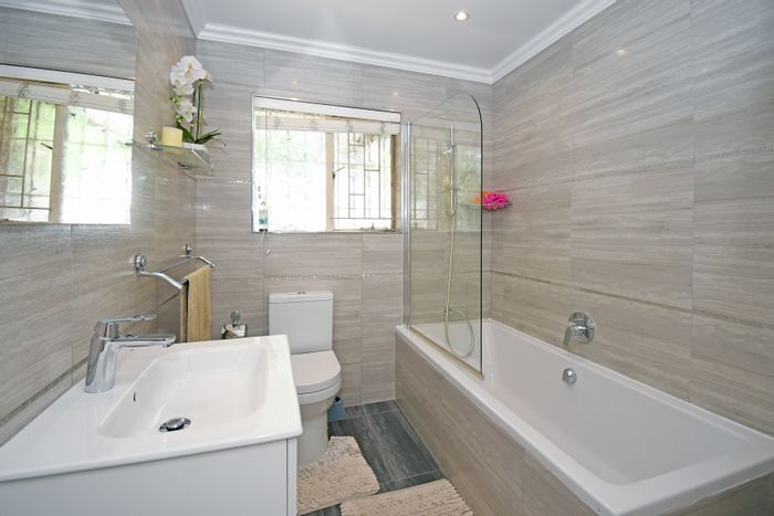 Prestigious Vorna Valley entertainer's home: contemporary open-plan living, designer kitchen and expansive patio framing a private pool and wooded garden. Includes master ensuite, double garage and a separate 2‑bed cottage.