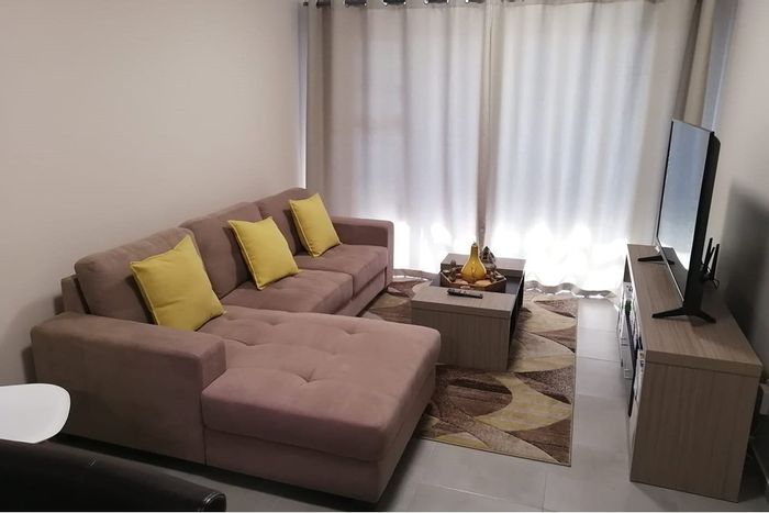 Enjoy effortless urban living steps from the Mall of Africa in Vorna Valley — bright open-plan first-floor apartment with a sunny mini balcony, secure landscaped complex, two bedrooms, two baths.