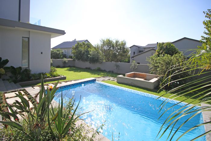 Entertainer's retreat in Waterfall Country Estate Gate 6 with poolside garden and versatile living zones — well-appointed kitchen, five bedrooms, 5.5 bathrooms and four garages.