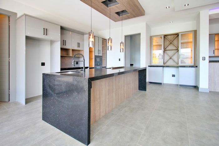Enter refined Waterfall Country Estate Gate 2 living with a grand entrance, designer Siemens kitchen, private cinema and seamless indoor-outdoor flow to landscaped garden and sparkling pool; five bedrooms, staff quarters.