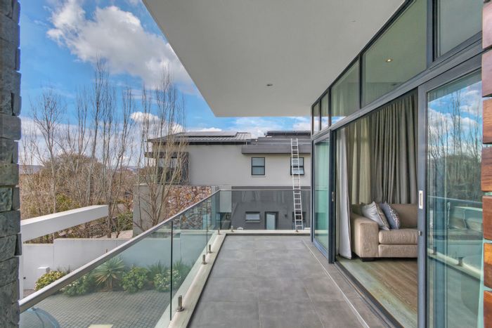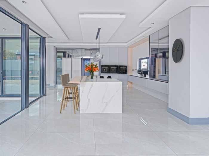 Entertainer's paradise in Waterfall Country Estate Gate 2 — grand entrance, private cinema, gourmet Siemens kitchen with gas stove, pool and braai, expansive master balcony.