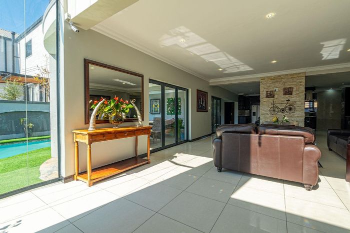 Entertain effortlessly with open-plan living and a covered braai patio overlooking a lap pool in Waterfall Country Village Estate — close to the gate and clubhouse.