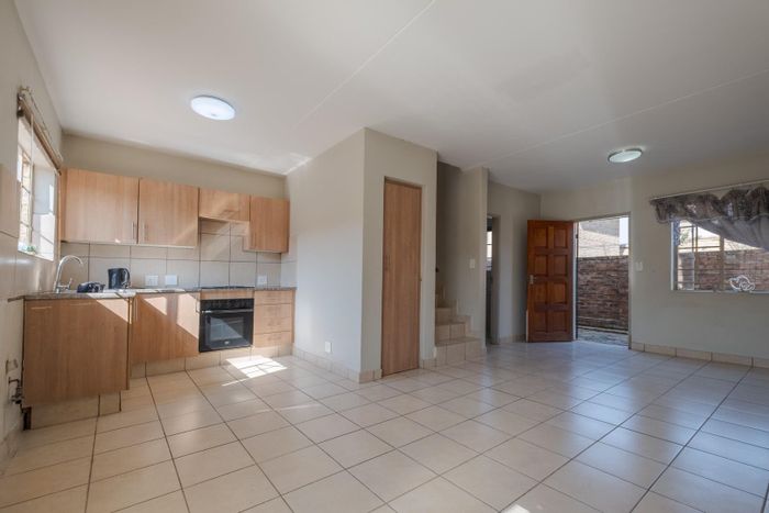 Ground-floor garden townhouse in secure, well-kept Annlin complex — modern kitchen with ample cupboards, open-plan lounge, close to shopping and good schools; 2 beds, 1 bath, parking.