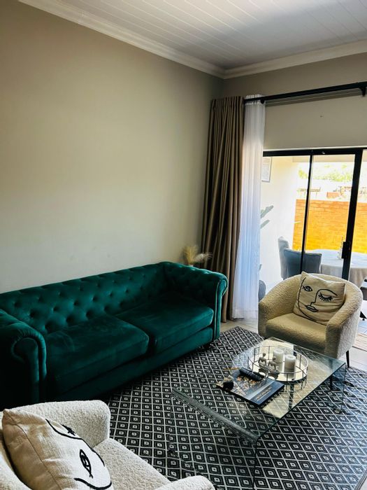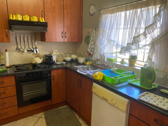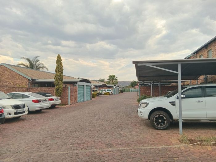 Pet-friendly townhouse in a secure Annlin estate, featuring a manicured garden, modern kitchen and two living areas; main en-suite with built-ins. 2 beds, 2 baths, double garage.