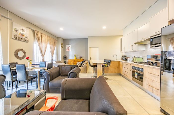 Family-friendly living in Equestria Estate, Klipberg, steps from The Grove Mall and Lynnwood Lane. Open-plan lounge opens to private garden; modern kitchen with scullery. 3 beds, 2 baths, double garage.