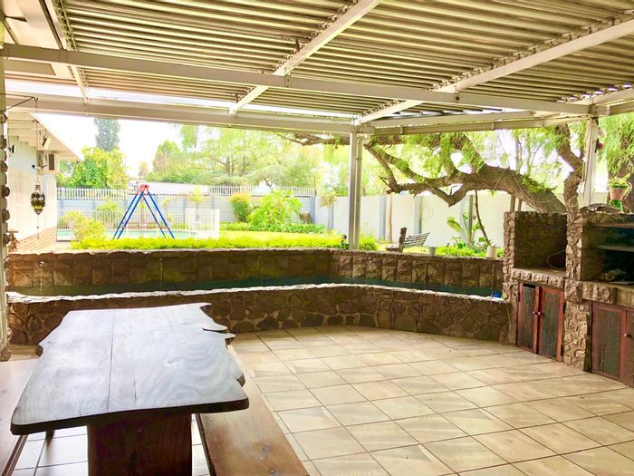 Peaceful family retreat near shops, Eduplex and CR Swart High, featuring a tree-filled walled garden and rustic braai; three-bedroom, two-bath main house with ample parking.