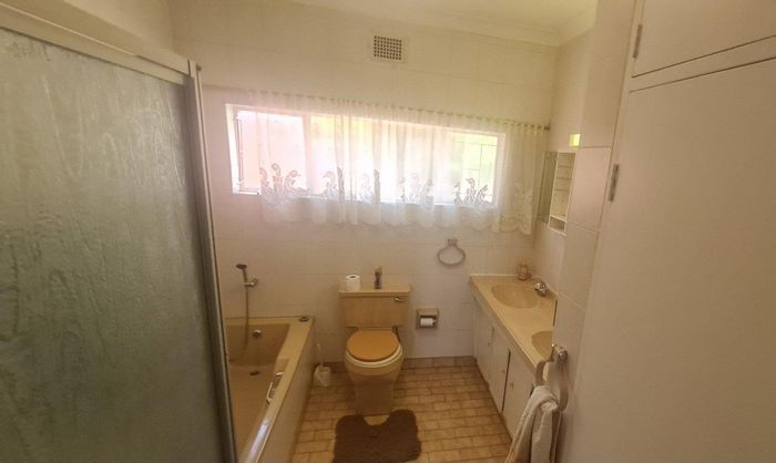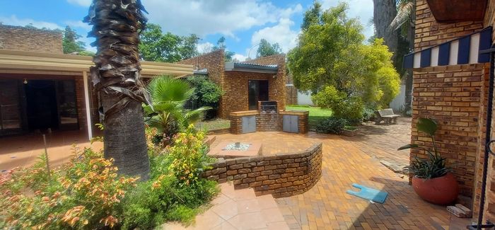 Entertainer's haven in a quiet, leafy neighbourhood — expansive living flows to a thatched lapa with built-in braai and enclosed pool. Four bedrooms (two en-suite), garage for 4–5 cars.