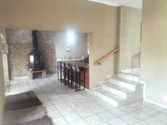 Family-focused living in Moreleta Park near top schools and shops; open-plan kitchen, upstairs study/pajama lounge with fireplace and patio potential. Three bedrooms, two bathrooms, single garage.