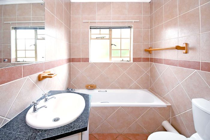 Resort-style living in a secure complex with clubhouse, tennis courts and pool — entertain on the built-in braai patio overlooking front and back gardens; two bedrooms, two bathrooms, double garage.