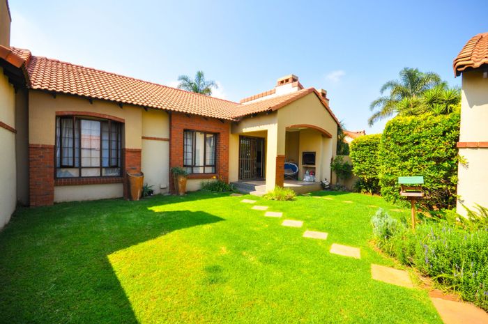 Convenient Moreleta Park estate living with clubhouse, pool and 24-hour security; this home features a huge private garden with louvre-deck and built-in braai, open-plan living and double garage.