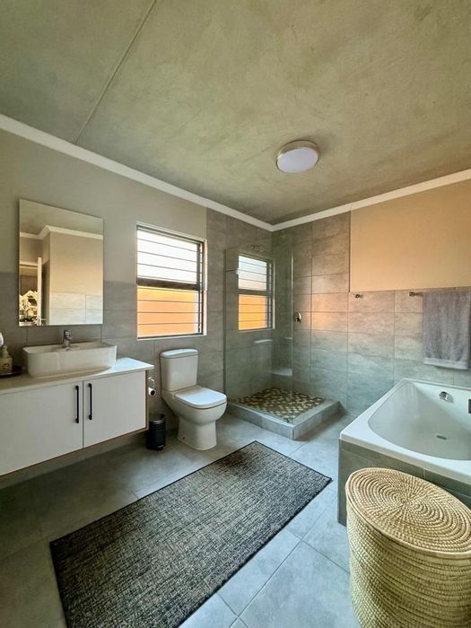 Entertain effortlessly in this modern Boardwalk Villas home, minutes from malls, schools and highways — private garden and covered patio with built-in braai; three bedrooms, two bathrooms.