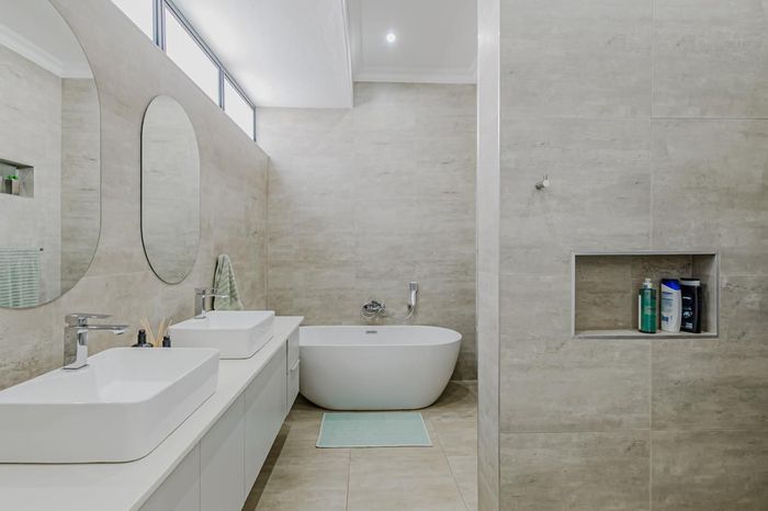 Family-focused living in a secure estate with play park — multiple lounges, granite kitchen and scullery, sunny patio with built-in braai, solar geyser. Four beds, three baths, double garage.