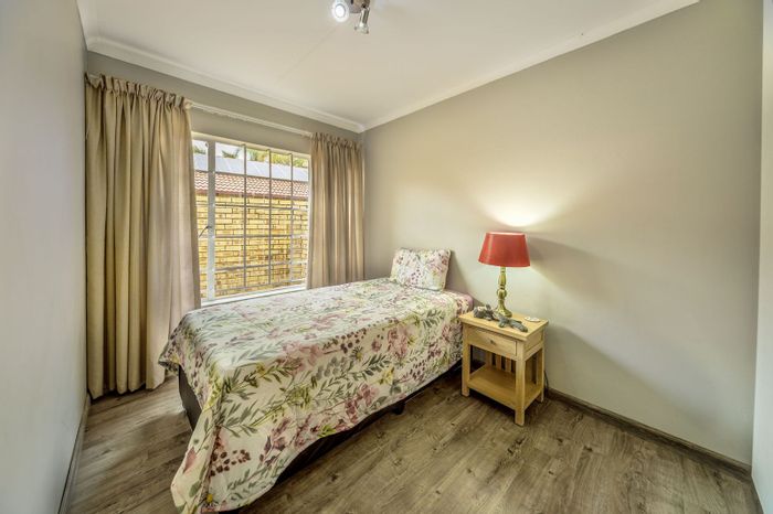Low-maintenance, secure living in Oukraal Estate with quick N4 access and nearby shops; ground-floor bachelor offers a private patio overlooking communal gardens, granite kitchenette, built-in storage.