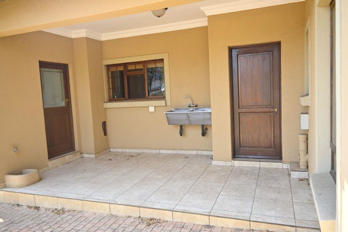 Relaxed eco-estate living in prestigious Roodeplaat with scenic trails and 24-hour security. Covered patio with built-in braai, private garden and pool; three bedrooms, 2.5 baths, double garage.