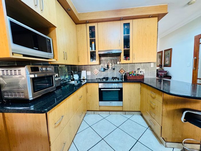 Entertainer's dream in secure Montana estate with effortless move-in living, covered patio with built-in braai overlooking private garden and heated pool. Four beds, 3.5 baths, four garages