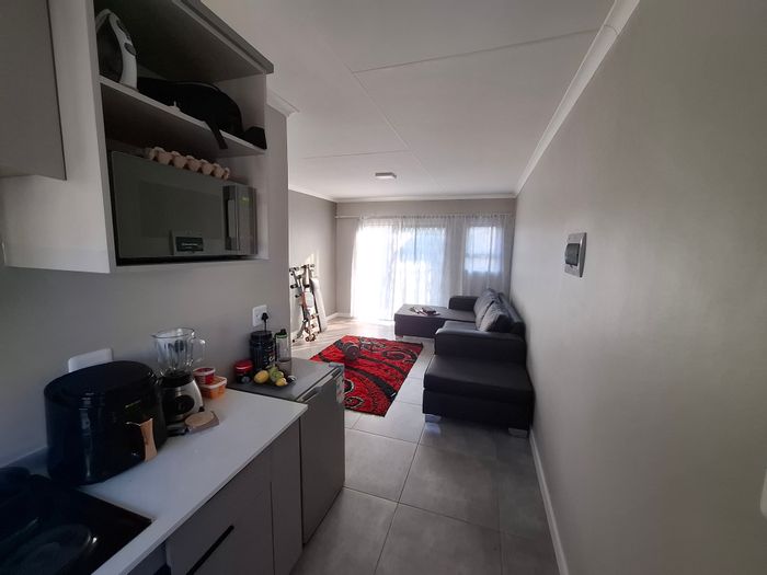 Corner first-floor apartment in quiet Sinoville cul-de-sac, steps from Pick n Pay and Stephanus Roos School. Open-plan kitchen, private balcony, communal braai/play areas; one bedroom, carport.