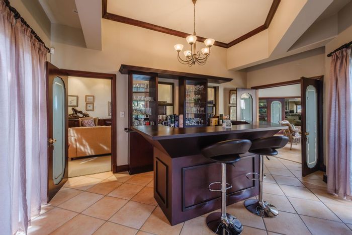 Live or host with panoramic Pretoria East views from Bron Mountain, entertaining on the patio with built-in braai and splash pool; ten bedrooms, multiple en‑suites and double garage.