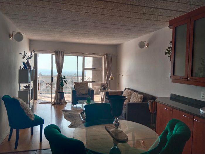 Relax in elevated Northcliff living above the Spruit and Melville Koppies with panoramic Johannesburg skyline views, parquet floors, full-length patio via stacker doors and one-bedroom charm.