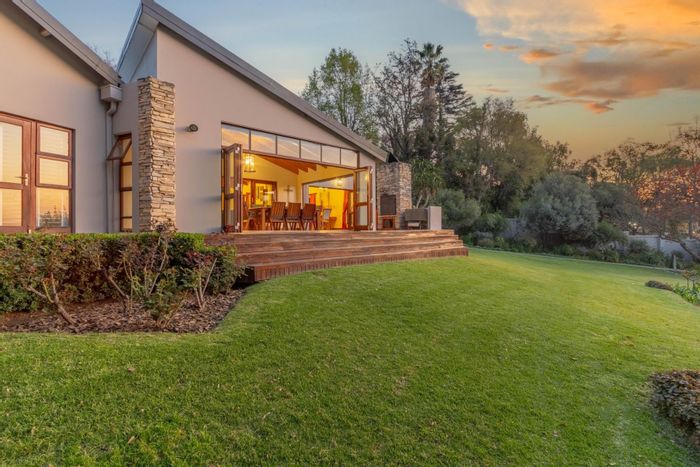 Entertainer's dream for lively gatherings and relaxed family life in a serene, leafy neighbourhood, featuring a fitted-gas-braai lapa, terraced manicured lawn, steam room; four bedrooms, three bathrooms, double covered parking.