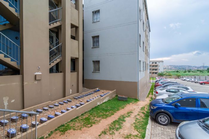 Two-bedroom, one-bathroom ground floor apartment in Wilgeheuwel, Roodepoort; 61 m² with covered parking.