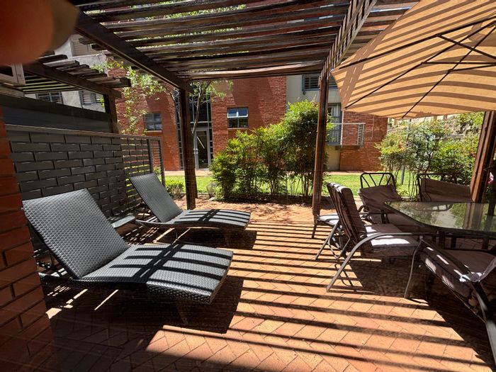 Live steps from Hyde Park Corner and the Gautrain bus stop, unwind by the communal pool with a patio overlooking manicured gardens — one-bedroom, one-bathroom with undercover parking.