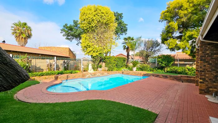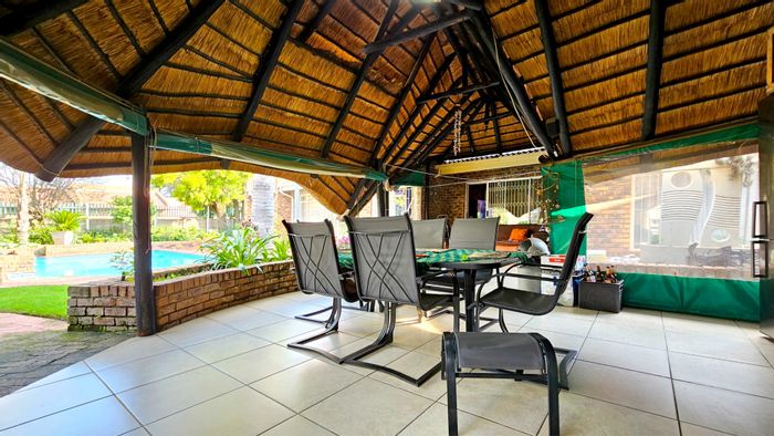Entertainer's dream in a quiet neighbourhood on a generous 1,364 m² plot — pool, built-in bar and braai, pet-friendly garden; three bedrooms, two bathrooms, double garage.