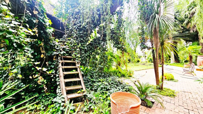 Event-ready suburban estate with poolside entertainment, massive garden and recreational wing; solar-heated pool, borehole irrigation, development-ready 2,600 m² and existing clientele. Ten ensuites, 12 covered parking bays.