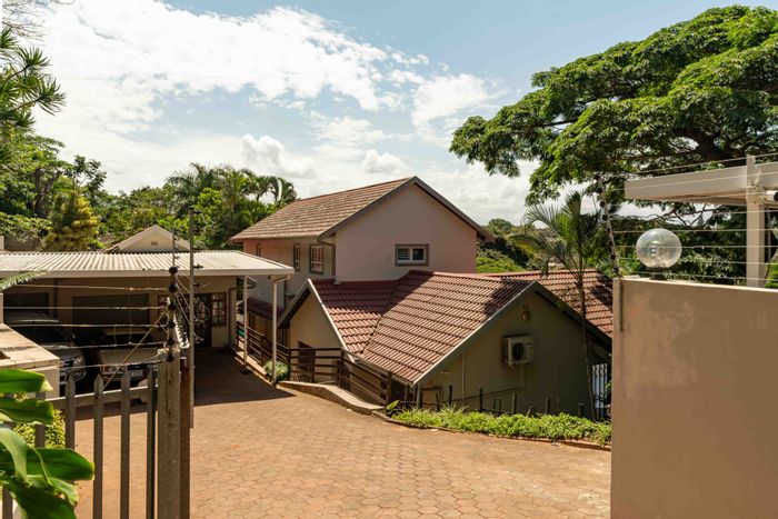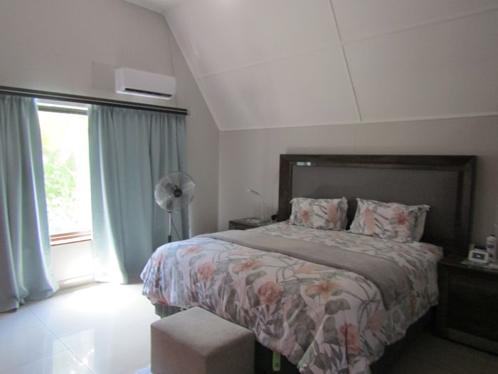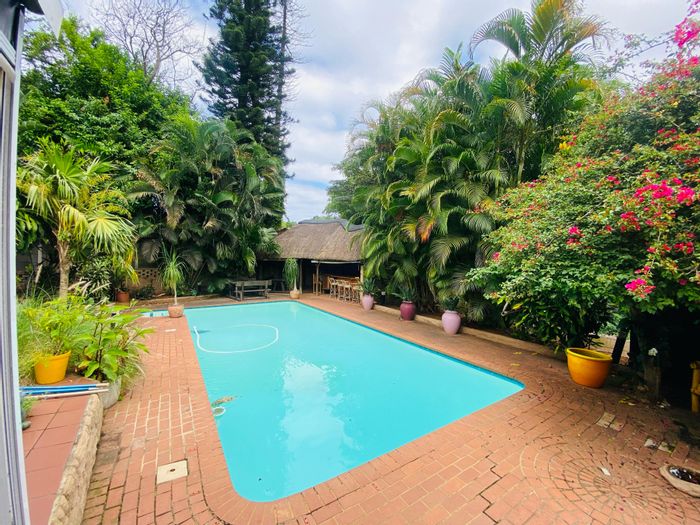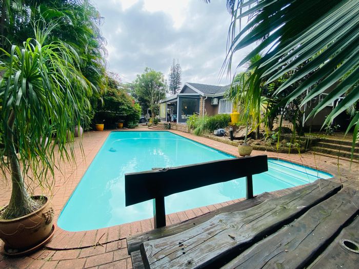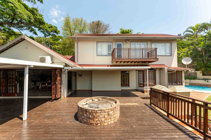 Entertainer's coastal retreat in Amanzimtoti with a large wooden deck and built-in braai overlooking a manicured garden — includes a self-contained flat, four bedrooms and three bathrooms.