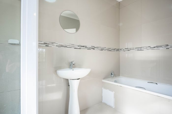 Poolside entertainer’s dream in a family-friendly setting: open-plan kitchen/dining and living overlooking the entertainment area and pool. Four bedrooms (main en-suite), plus self-contained one-bedroom flatlet, double garage and carport.