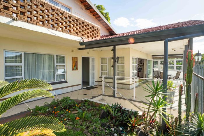 Relaxed coastal family living in Amanzimtoti — verandah sunsets and sea breezes near schools and the Civic Centre, with a sparkling pool and lush garden; four bedrooms, two bathrooms.