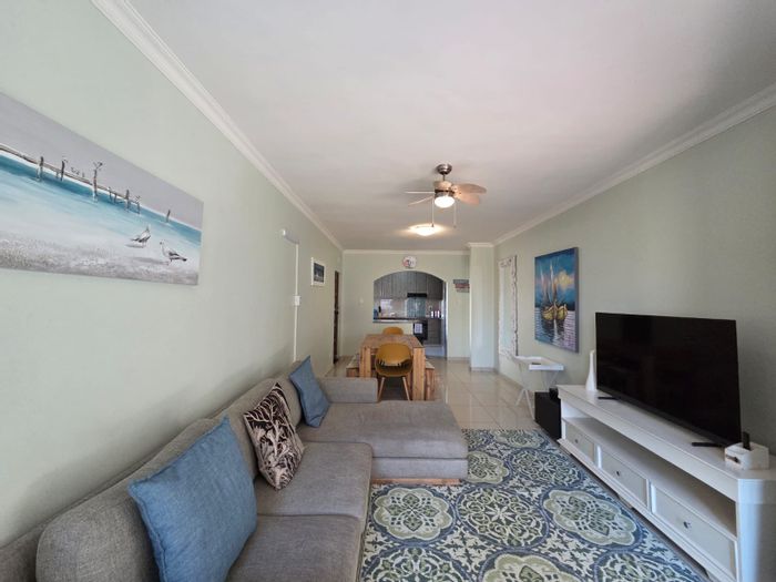 Beachside convenience in Ballito living with communal pool, clubhouse and manicured gardens; ground-floor, pet-friendly apartment featuring open-plan living and granite counters. Two bedrooms, one bath, covered parking.