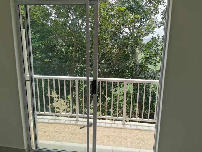 Relaxed lock-up-and-go living with sugarcane vistas in a secure estate near Ballito Junction, featuring a communal pool and large dam with braai areas. One-bedroom, one-bath, two covered parking.